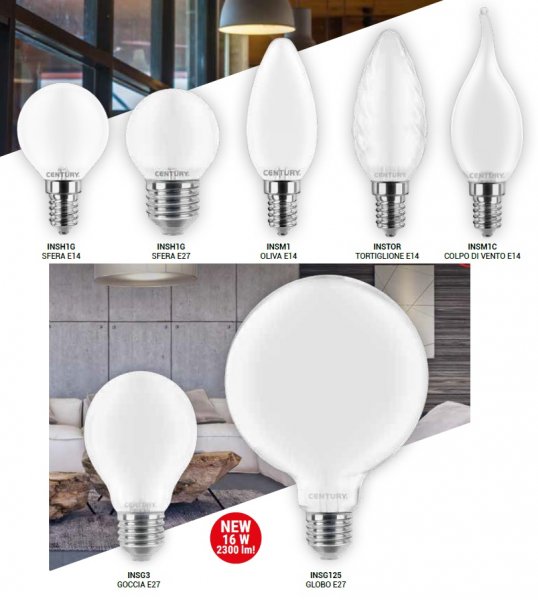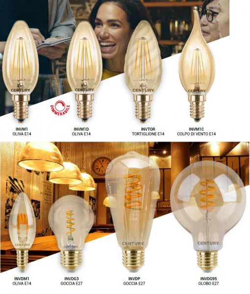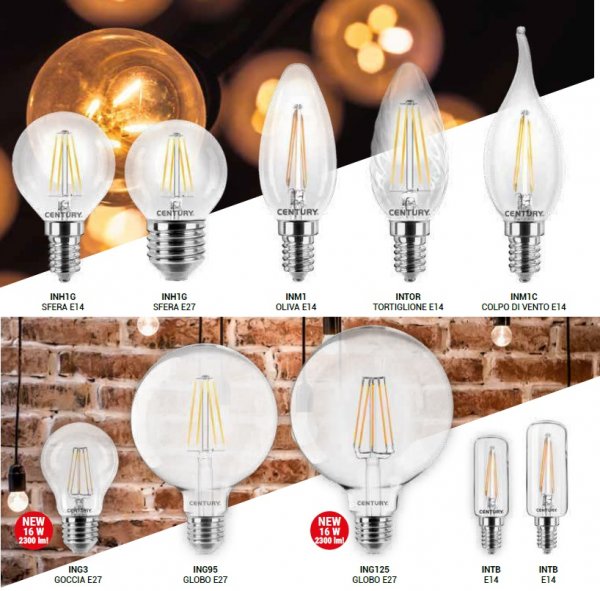 DettagliLampade trasparenti con innovativa tecnologia a fi lamento LED che consente di creare un’atmosfera intima e suggestiva. Risparmio energetico ...