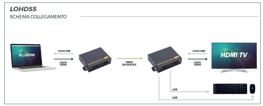 - Trasmette il segnale HDMI fino a 2km su cavo in fibra ottica