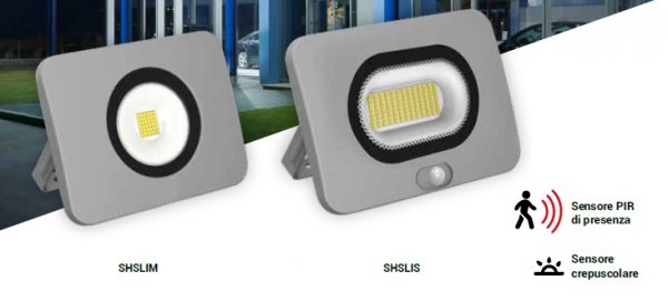 DettagliDesign ultrapiatto, scocca in alluminio pesante, vetro temperato. La versione SHSLIS è dotata di sensore PIR ad accensione automatica: si ...
