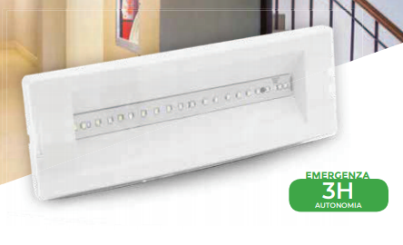 DettagliSi accende in mancanza di energia elettrica rimanendo attiva per 3 ore. Installabile a superifi cie o a incasso con apposito box incluso. ...