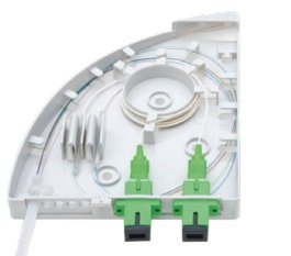 Contenitore di distribuzione a parete angolare completo di adattatori plastici per 2 bussole FC / SC / SC-APC / LC / ST. Dimensioni: 140 x 109 x 25 ...