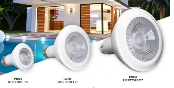 DettagliLampade PAR di nuova generazione con fascio di luce bianca, soluzione ideale per l’illuminazione spot. La speciale lente assicura un fascio ...