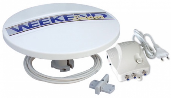 DettagliAntenna Terrestre Teleco WEEKEND da camper/barca omnidirezzionale + amplificatore - guadagno con amplificatore 9/26db - diametro 28cm