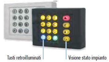 Tastiera di programmazione e comando via fi lo su bus RS485. Funzioni panico, allarme silenzioso e anticoercizione. Ingresso di allarme indipendente ...