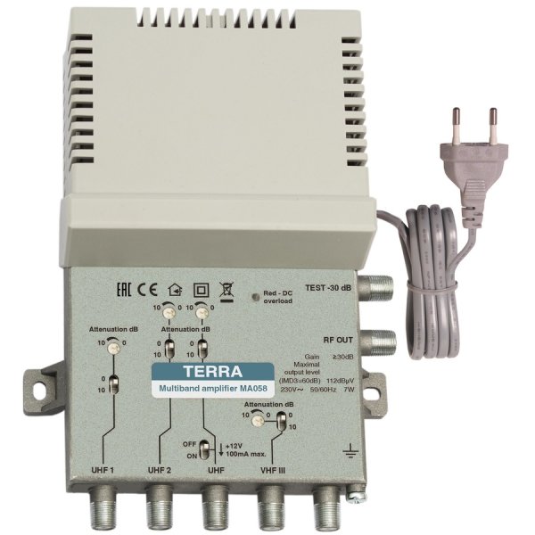 DettagliAmplificatore Terra TRMA058 4 ingressi (III+B4+B5+U) - taglio LTE - Liv Out 115 - guadagno 20/30dB