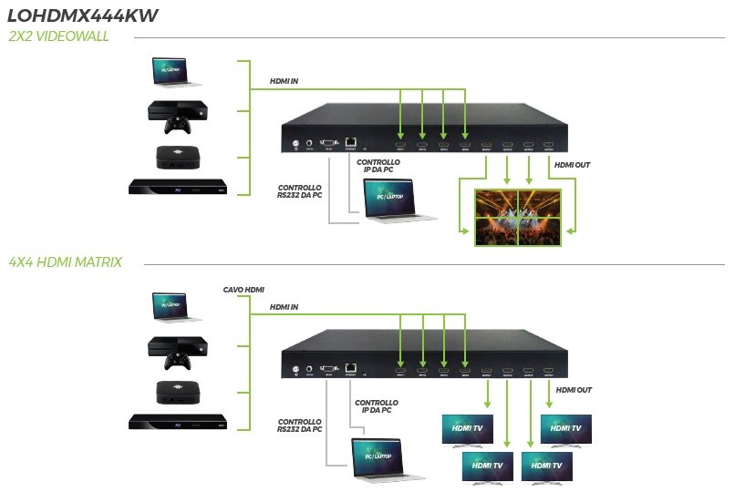 - With panel button, Remote Control, RS232 Control, TCP/IP Control to select the