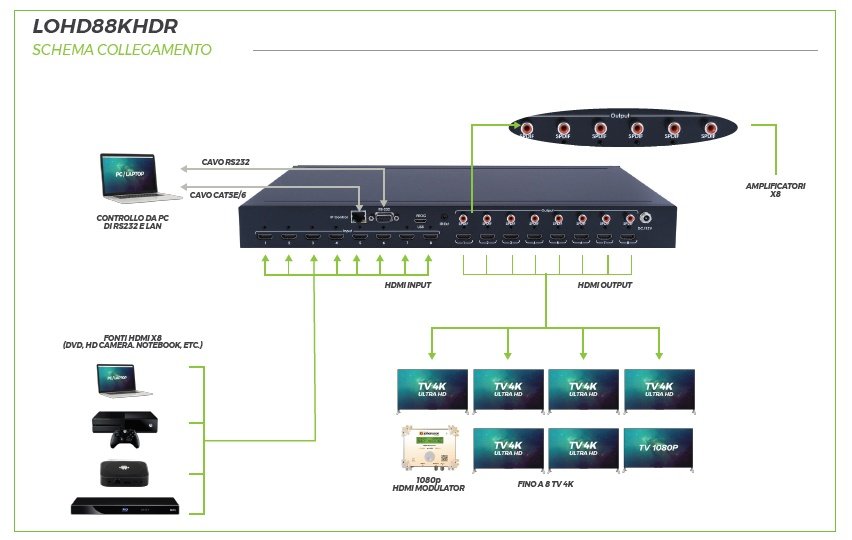 - 8xHDMI Input, 8xHDMI output with 8xSPDIF Audio