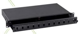 DettagliPannello frontale nero per 12 bussole SC simplex , E2000 , MTRJ per Cassetto SB-A-SW
