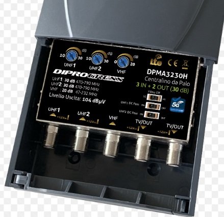 DettagliAmplificatore Diprogress DPMA3230H 3 in (V+U+U) 30 dB reg. - Liv Out 104 - 2 OUT -passaggio DC Filtro 5G ...