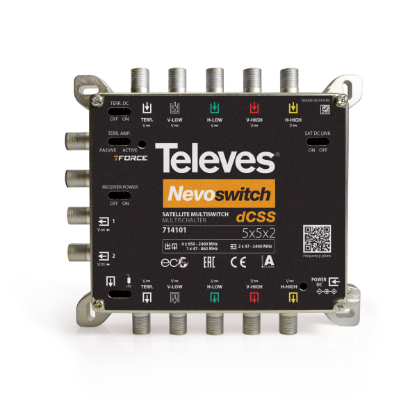 DettagliMULTISWITCH TELEVES RADIALI E CASCATA 5 INGRESSI (1 SAT + TERRESTRE ATTIVO/PASSIVO) - TECNOLOGIA dCSS 714101 Multiswitch dCSS 5x5x2 “F” ...