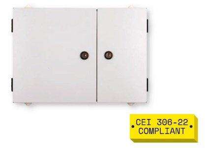 Contenitore Servizi SAT / TV di distribuzione a parete, doppia apertura con chiave, pronto per 24 adattatori SC/APC /SC/APC. Dimensioni: 421 x 316 ...