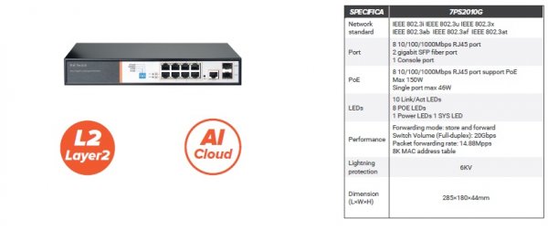 DettagliSwitch Layer2 7PS2010G Novatec - Support hardware watchdog, restore factory Settings, system and port LED - Support global information, statistics, ...
