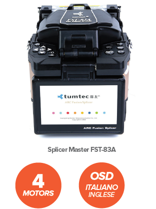 DettagliSaldatrice Splicer Master FST-83A – Core Alignment 4-Motors Standard accessories: - Fusion splicer FST-83A - Fiber cleaver A9+ - Battery - ...