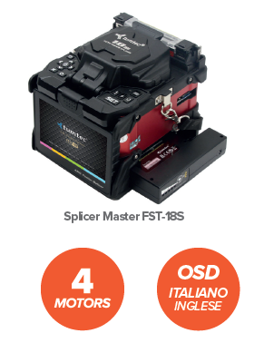 DettagliSaldatrice Splicer Master FST-18S – Cladding Alignment 4-Motors Standard accessories: - Fusion splicer FST-18H / FST18S - Fiber cleaver ...